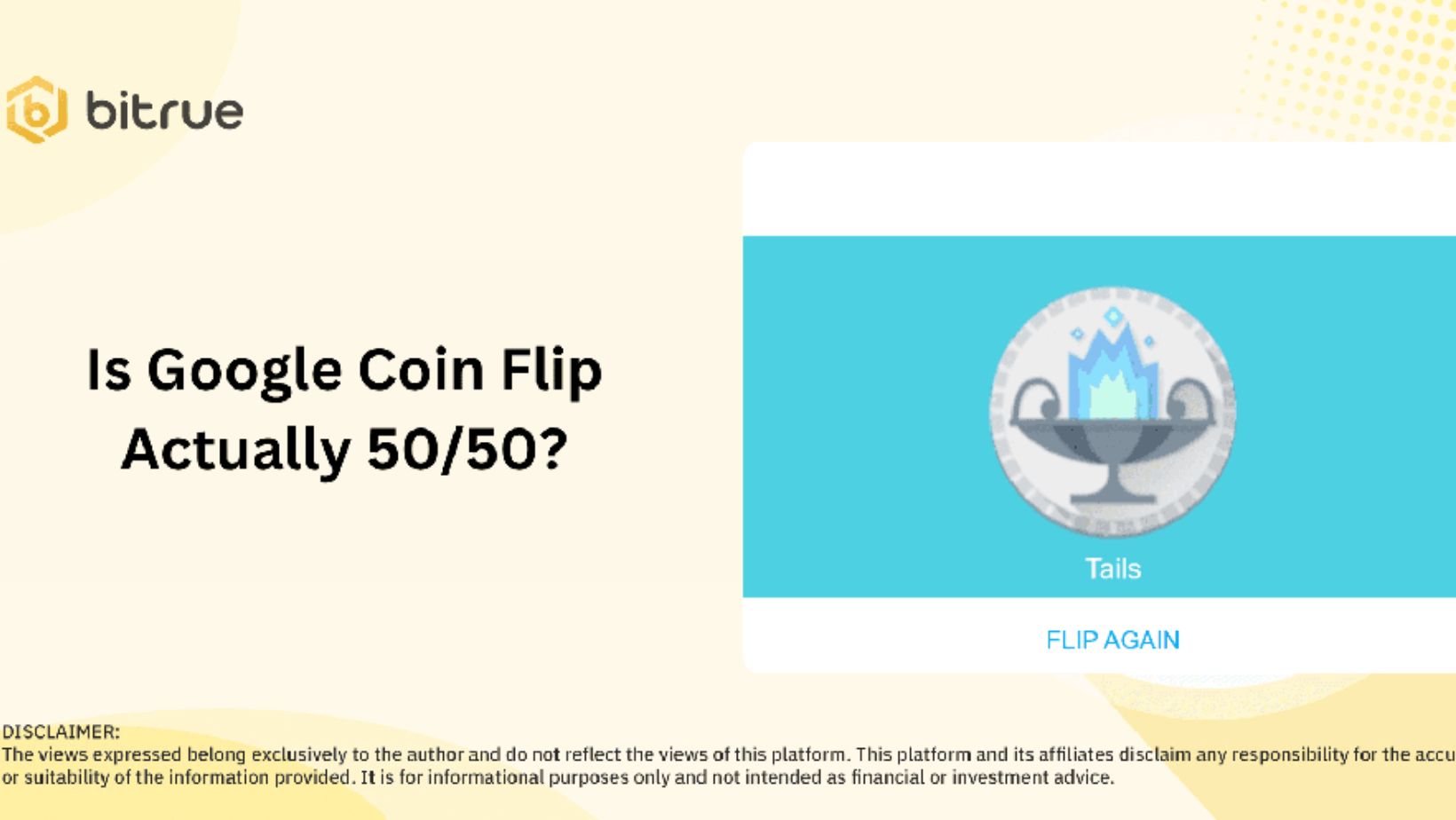 Figure: A digital coin‐flip interface (here a Google “Flip a coin” result via Bitrue’s blog) showing “Tails”. Online tools use computer algorithms (pseudo‐random number generators) to produce flips, which on average are effectively 50/50